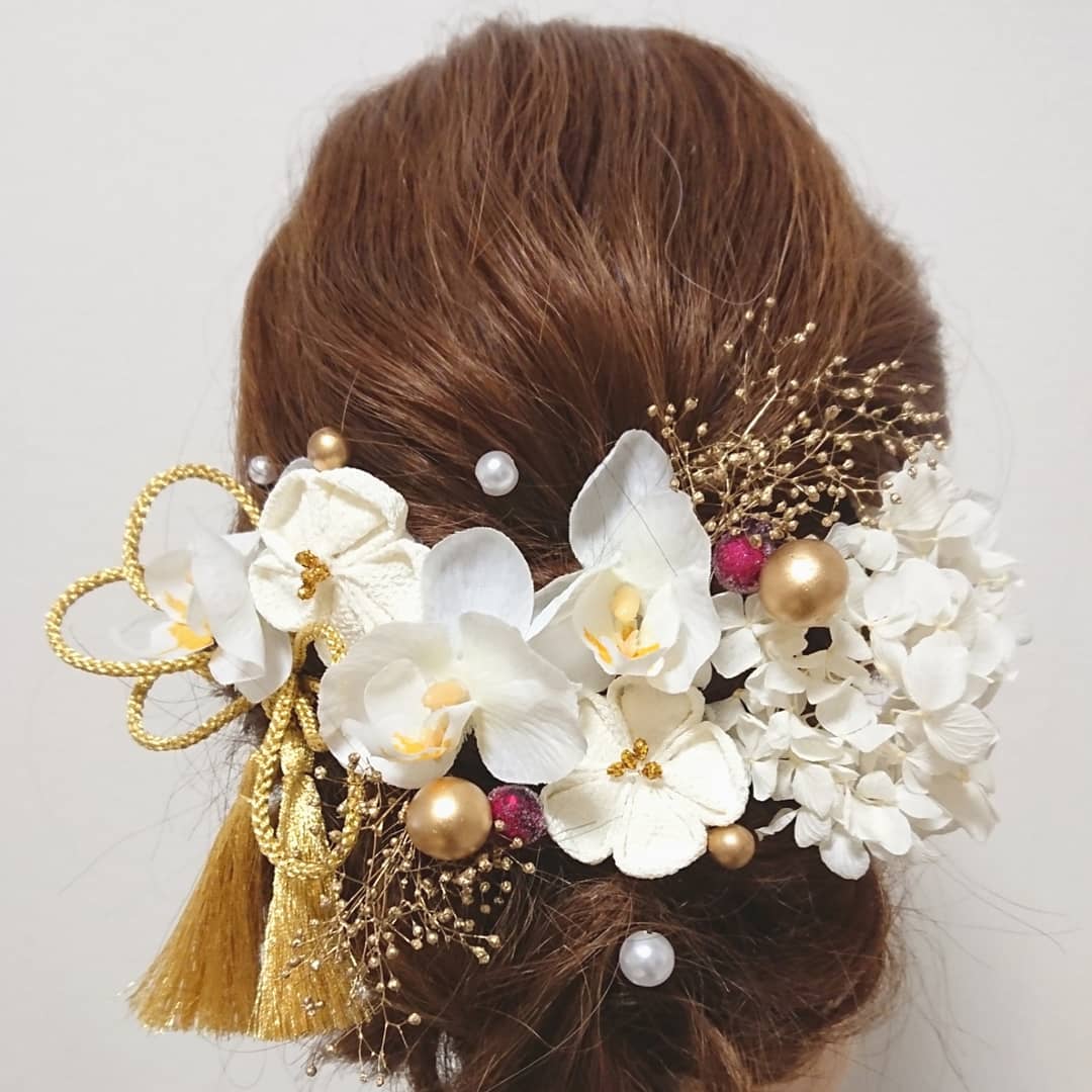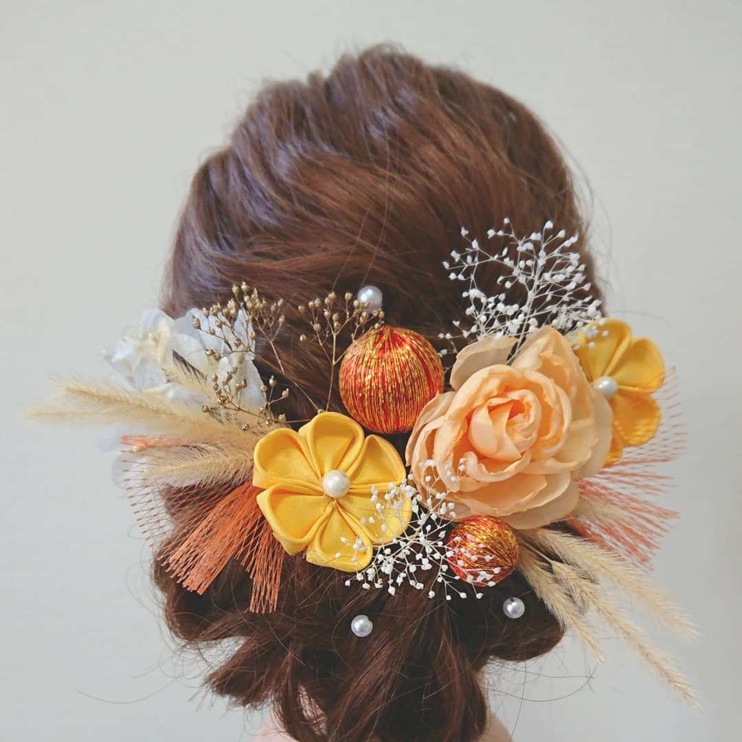 髪飾りをフラワーアレンジメントで制作販売しております。